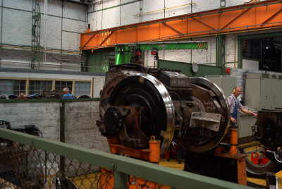 den Lüftern gekühlt. Vom Motor gelangt der Strom über die Räder in die Schiene.